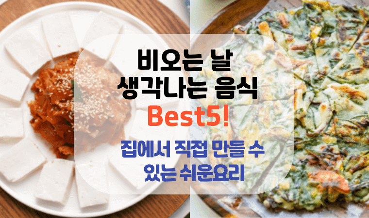 기나긴 여름이 지나고 가을비가 촉촉이 내리는 요즘입니다. 갑자기 추워진 날씨가 반갑기도 하지만 큰 일교차에 감기 걸리기 딱 좋은 날씨이기도 합니다. 주말 내내 비소식이 있던데 비 올 때 생각나는 음식들 보시고 맛있게 드셔보시면 좋을 듯하여 포스팅해 보았습니다. 비교적 집에서 해 먹기 쉬운 간편한 음식들 위주로 준비했으니 가족들과 둘러앉아 오손도손 음식 나눠드시며 행복한 시간 가지심 좋겠습니다.