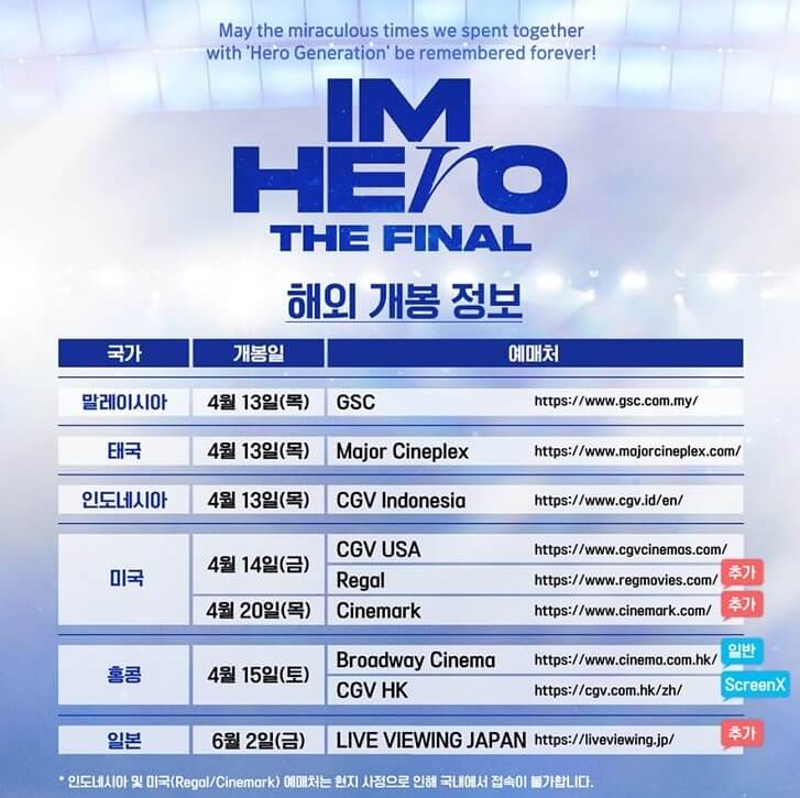 2. 콘서트 영화 IM HERO THE FINAL 소식